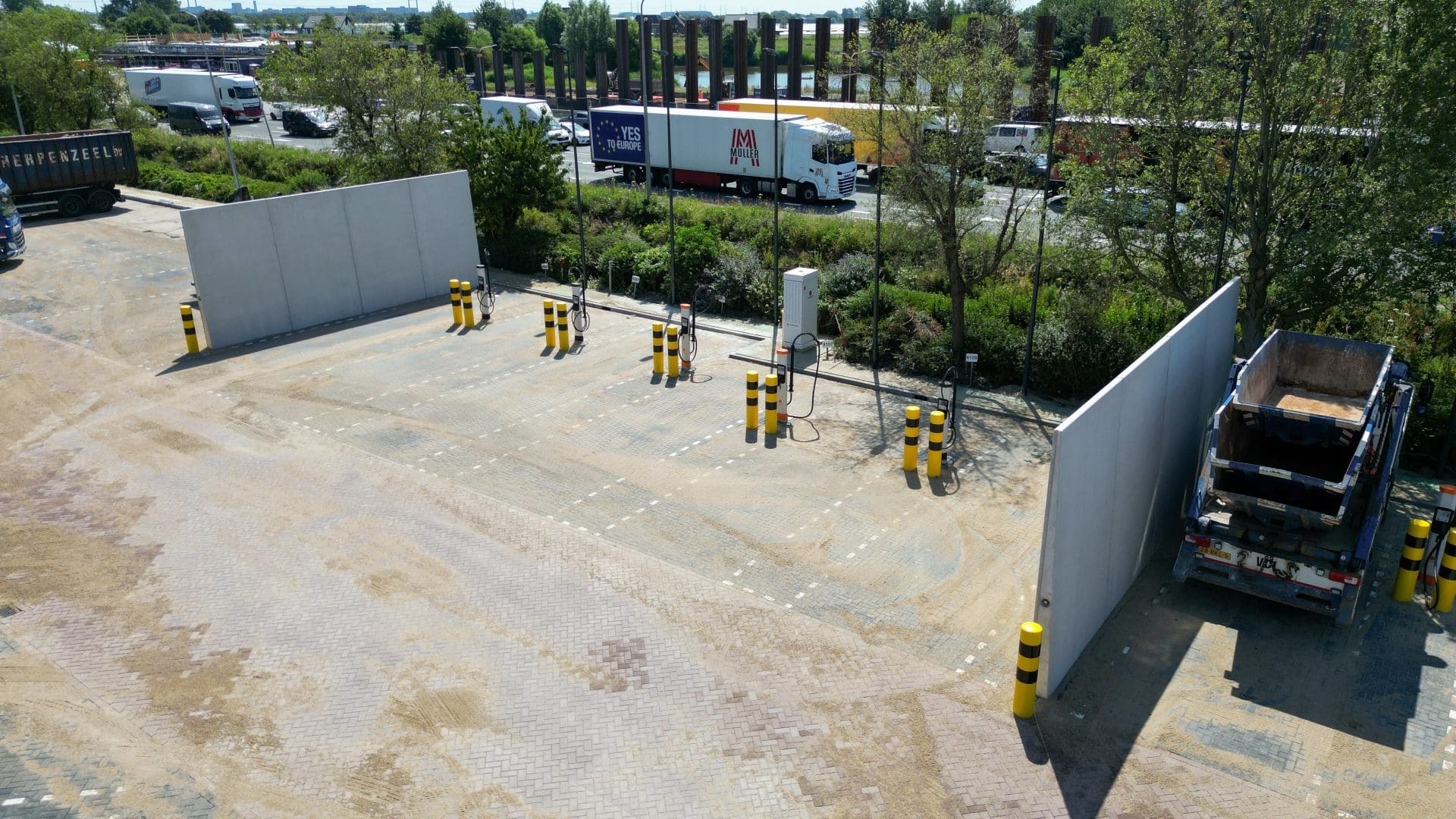 Sikker ladeplads for elektriske lastbiler med brandbestandige støttemure